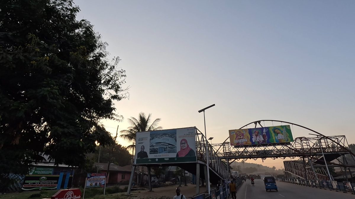 Na een tijd kom ik terug op de hoofdweg. Daar staat het billboard: het gezicht van Samia Suluhu Hassan, Tanzania’s eerste vrouwelijke president. Ze kondigt de bouw aan van de Standard Gauge Railway — een spoorlijn die het land zal verbinden en veranderen. Handel. Groei. Hoop. Terwijl ik verder trap, denk ik aan leiderschap. Aan hoe langzaam groei soms de meest blijvende verandering brengt.
