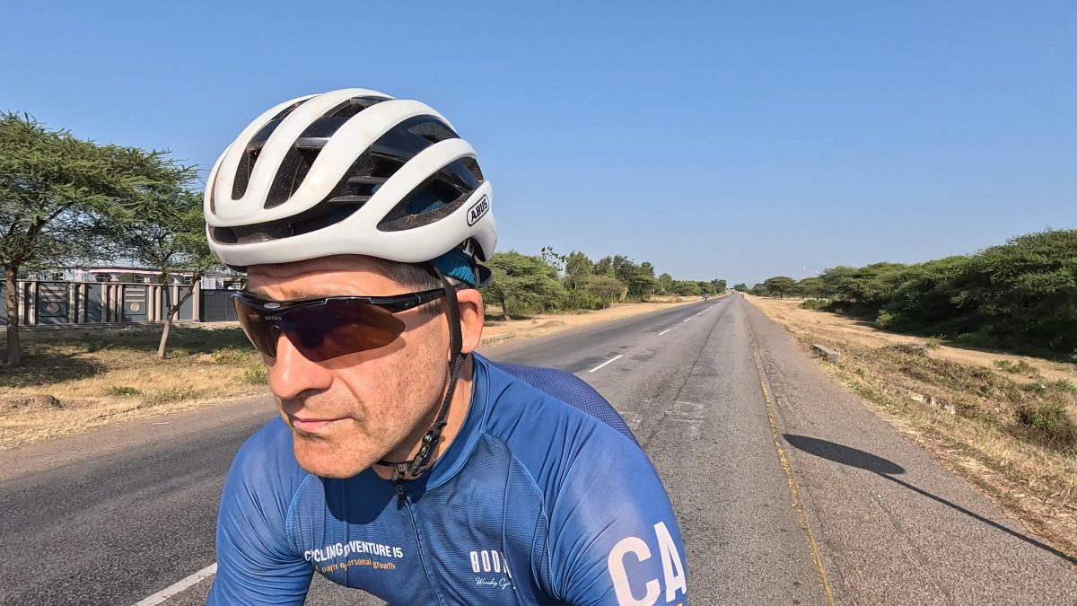 Borden waarschuwen voor wilde dieren. Ik zie zebra’s, geen giraffen. Een man op een motor rijdt even langs me, maar wanneer hij over contracten begint, groet ik en fiets door. Focus.
