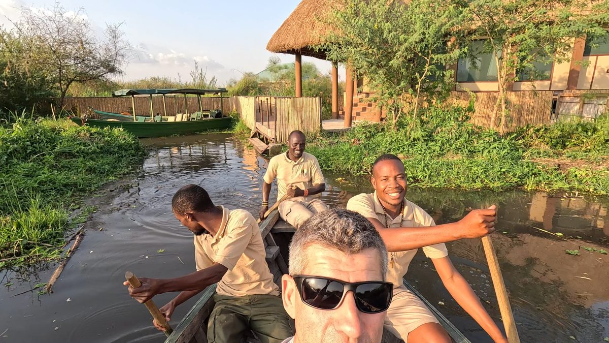 De avond brengt me aan de rand van Serengeti. Mijn slaapplaats: houten hutten op palen tussen het riet van Lake Victoria. Tijdens het inchecken duikt een nijlpaard loom boven water. Later, vanuit een houten uitkijktoren die je enkel per kano bereikt, zie ik de zon zakken in het meer. Stilte. Alleen ik, het water, de lucht, mijn ademhaling.