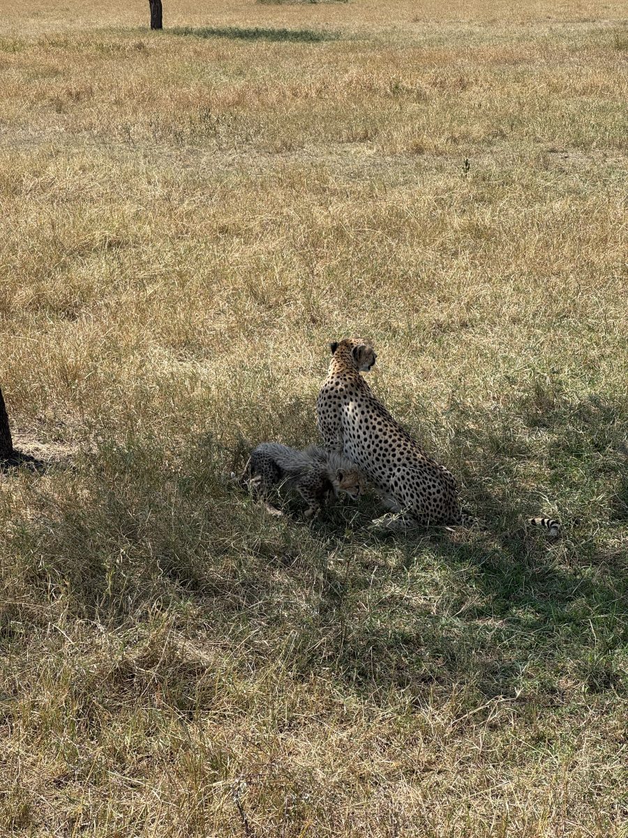 We hoeven niet lang te zoeken. Al snel zien we zebra’s tussen het hoge gras. Kennedy glimlacht. “Je hebt geluk,” zegt hij. “Soms zie je tijdens je hele verblijf geen enkel wild dier.” Maar ik zie alles. Giraffen, gnoes, leeuwen. We worden getuige van een leeuwin die zich verstopt in het gras, een warthog besluipt en aanvalt — en faalt. Het is rauw. Echt. Natuur zoals natuur is.