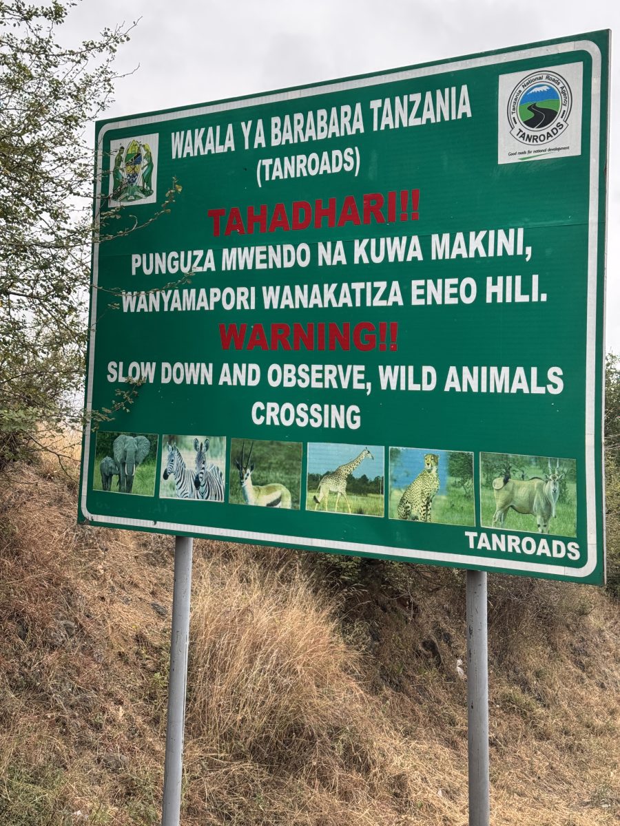 De weg richting Arusha is rustig. Langgerekte asfaltstroken, hier en daar een groep kinderen, zwaaiend. Pas voorbij Makuyuni wordt het drukker. Mijn aandacht verscherpt. Dit stuk snijdt door het Makuyuni Wildlife Park. De waarschuwingsborden zijn duidelijk: overstekende dieren, boetes voor wie faalt op te letten. Hier is het niet zomaar verkeer. Hier is het leven zelf dat kruist.