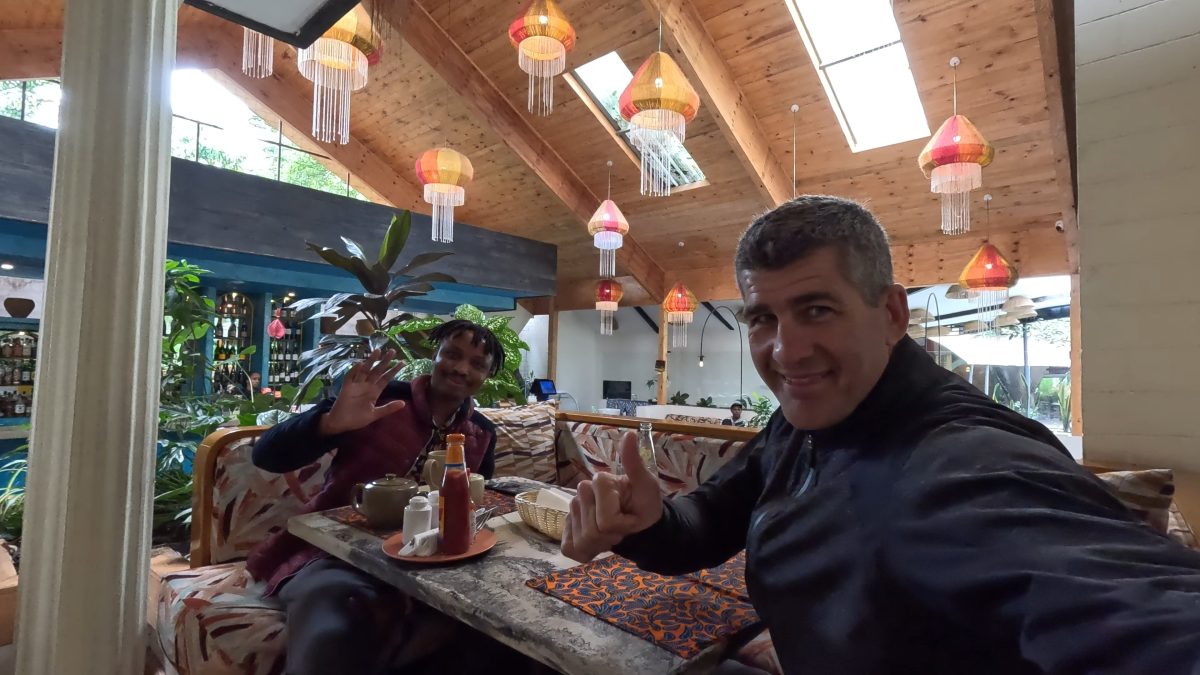 Onderweg praat hij over Nairobi. Over de protesten van maandag. Over de onrust. Innocent woonde jaren in Kenia en kent de stad van binnenuit. Hij zegt: “Daar moet je nu niet zijn.” Ik knik. De beelden bereiken me later: doden gevallen, politie die met scherp schoot op betogers. Chaos. Als je daar op de fiets middenin terechtkomt… Nee. Geen optie.