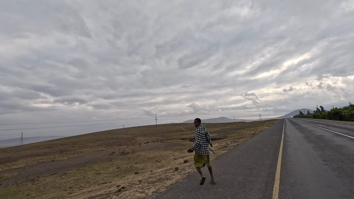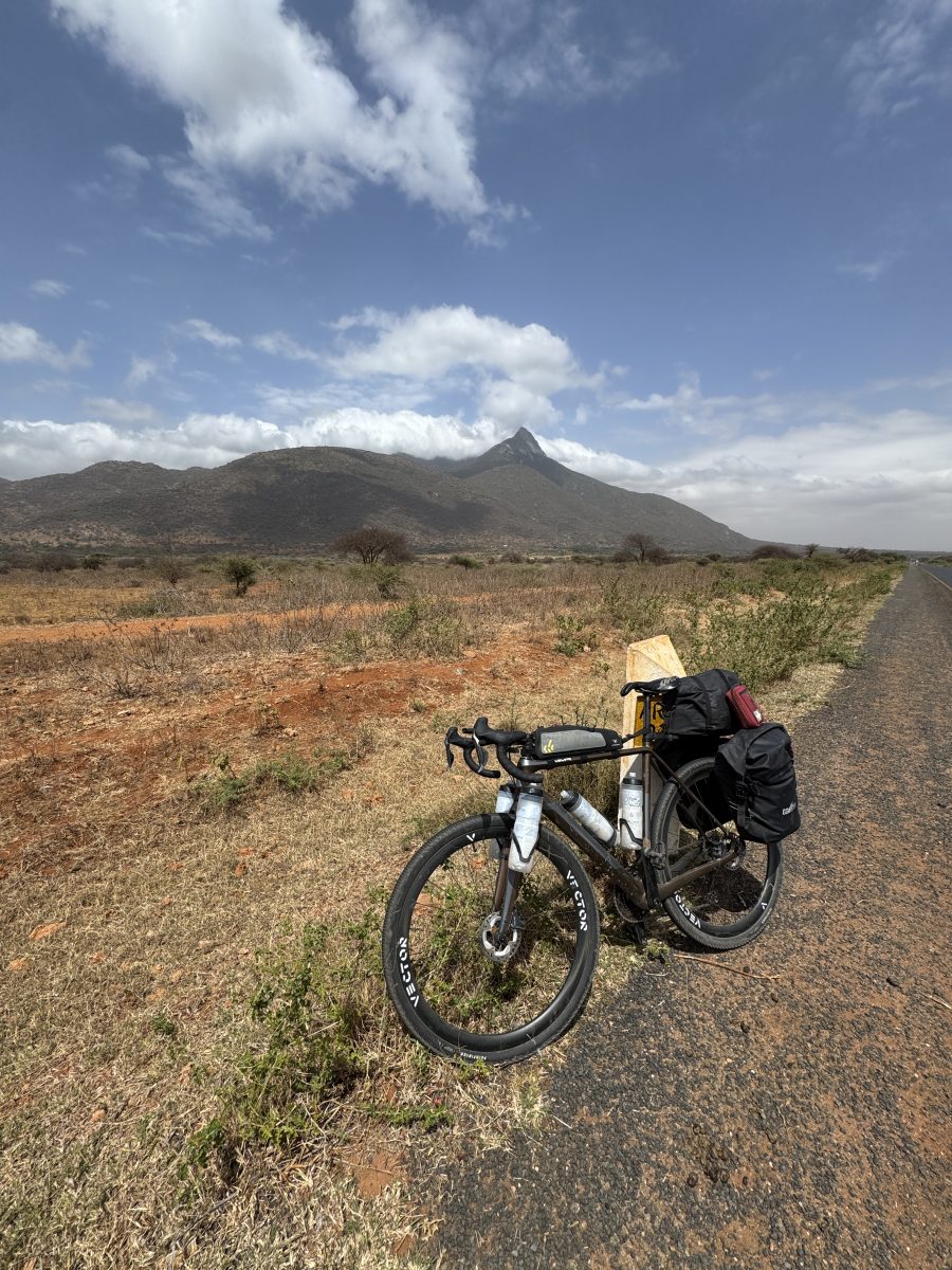 Woensdag – Donderdag: de grens over, richting Nairobi. Om 7u: ontbijt — dikke pannenkoeken van Innocent, twee mee voor onderweg. Om half acht: terug op de fiets. De lucht wordt ijler. De weg stijgt naar 1900 meter. Hier is Tanzania op zijn stilste.